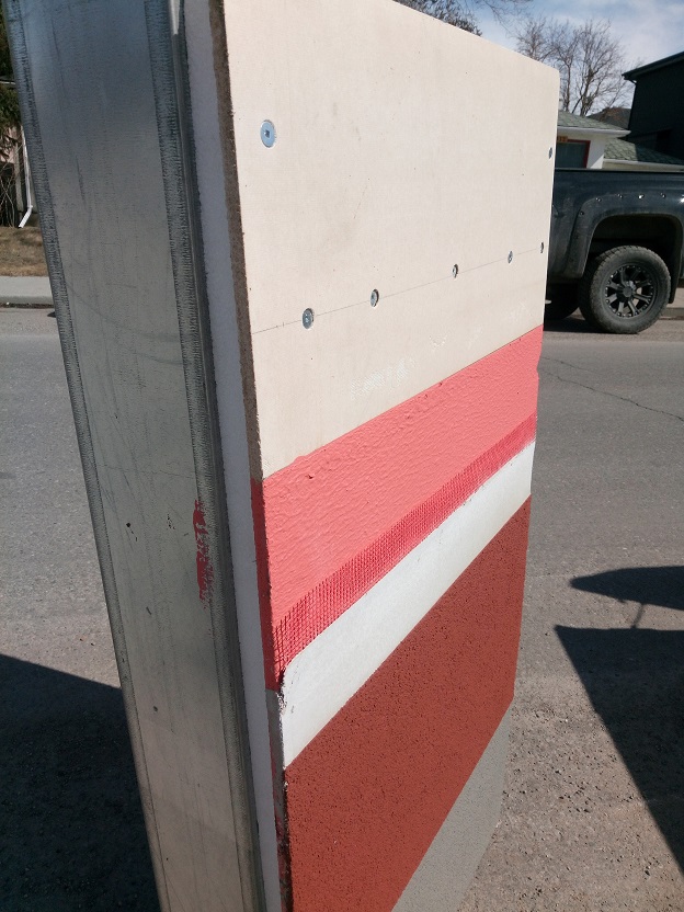 6” insulation board is sandwiched between two magnesium oxide boards and integrated with noncorrosive fasteners and ThermaSteel xPanels. The finished wall is completely sealed in all sides by non-combustible magnesium oxide boards thus, in case of fire, the wall is completely non-combustible as well.